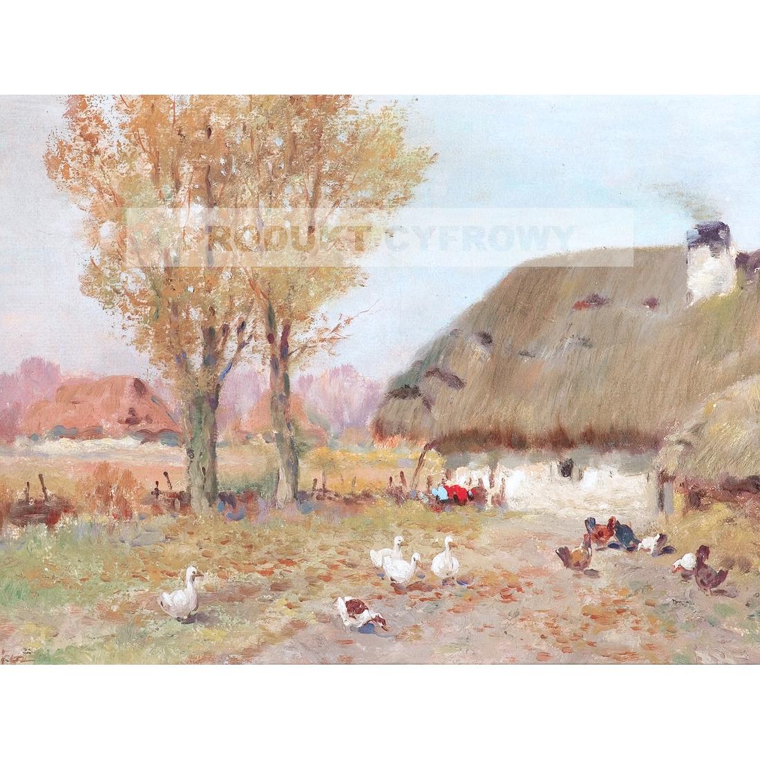 - Adam Setkowicz Zagroda z kurami 30×40 cm — JPG, 300 DPI