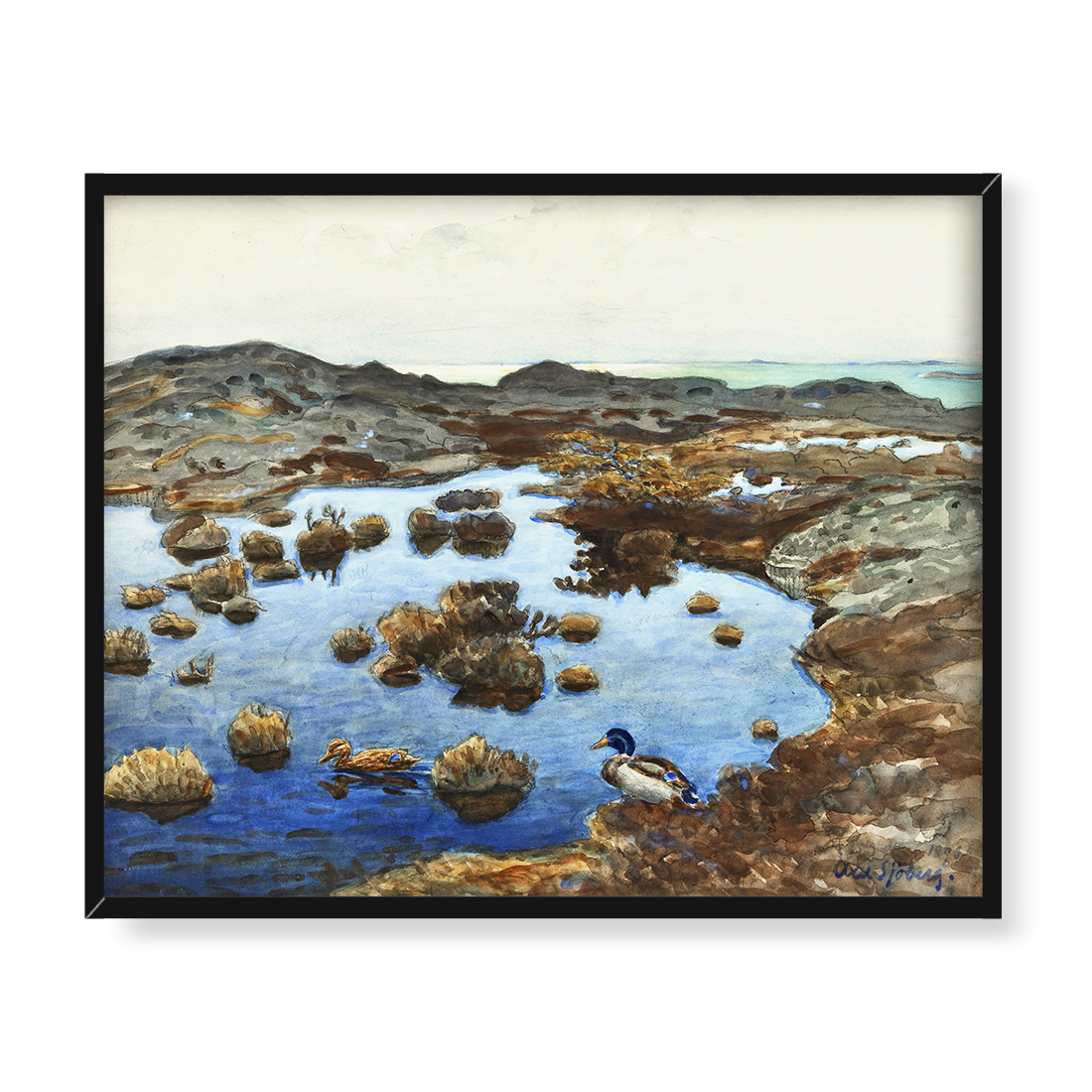 Wzór: Axel Sjoberg Pejzaż morski z kaczkami 50×40