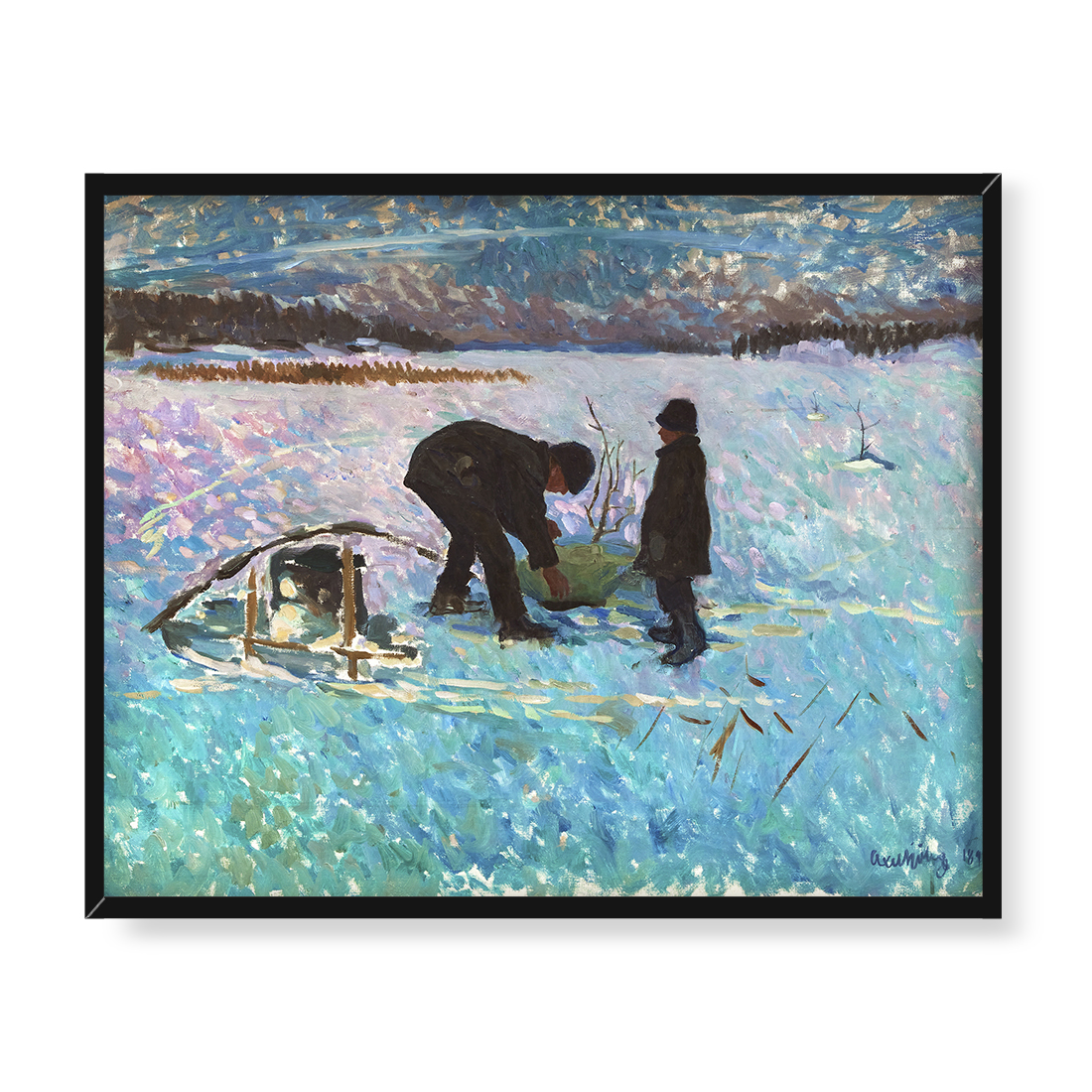 Axel Sjoberg Zimowy rybak 50×40 w RAMIE