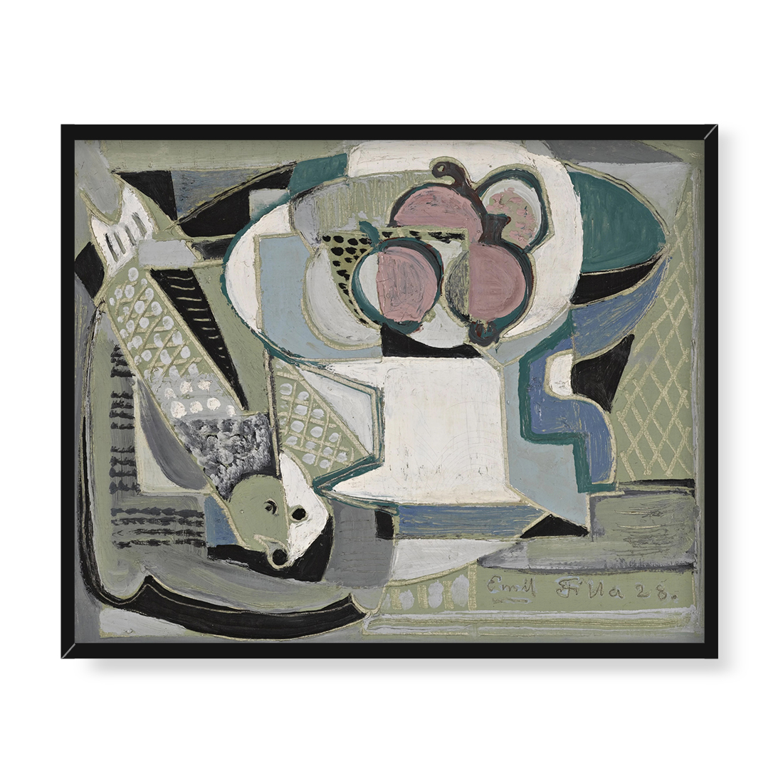 Emil Filla Martwa natura z owocami i rybą 50×40