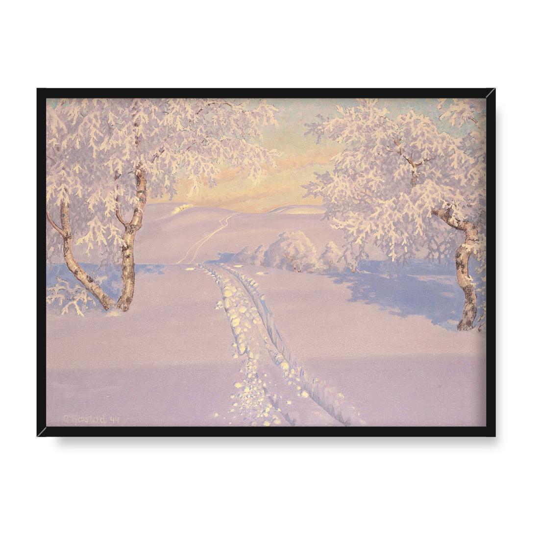 Gustaf Fjaestad Ślady nart w popołudniowym słońcu 40×30 w RAMIE