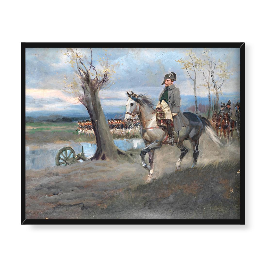 Wzór: Jerzy Kossak Napoleon na koniu prowadzący swoje wojska 50×40