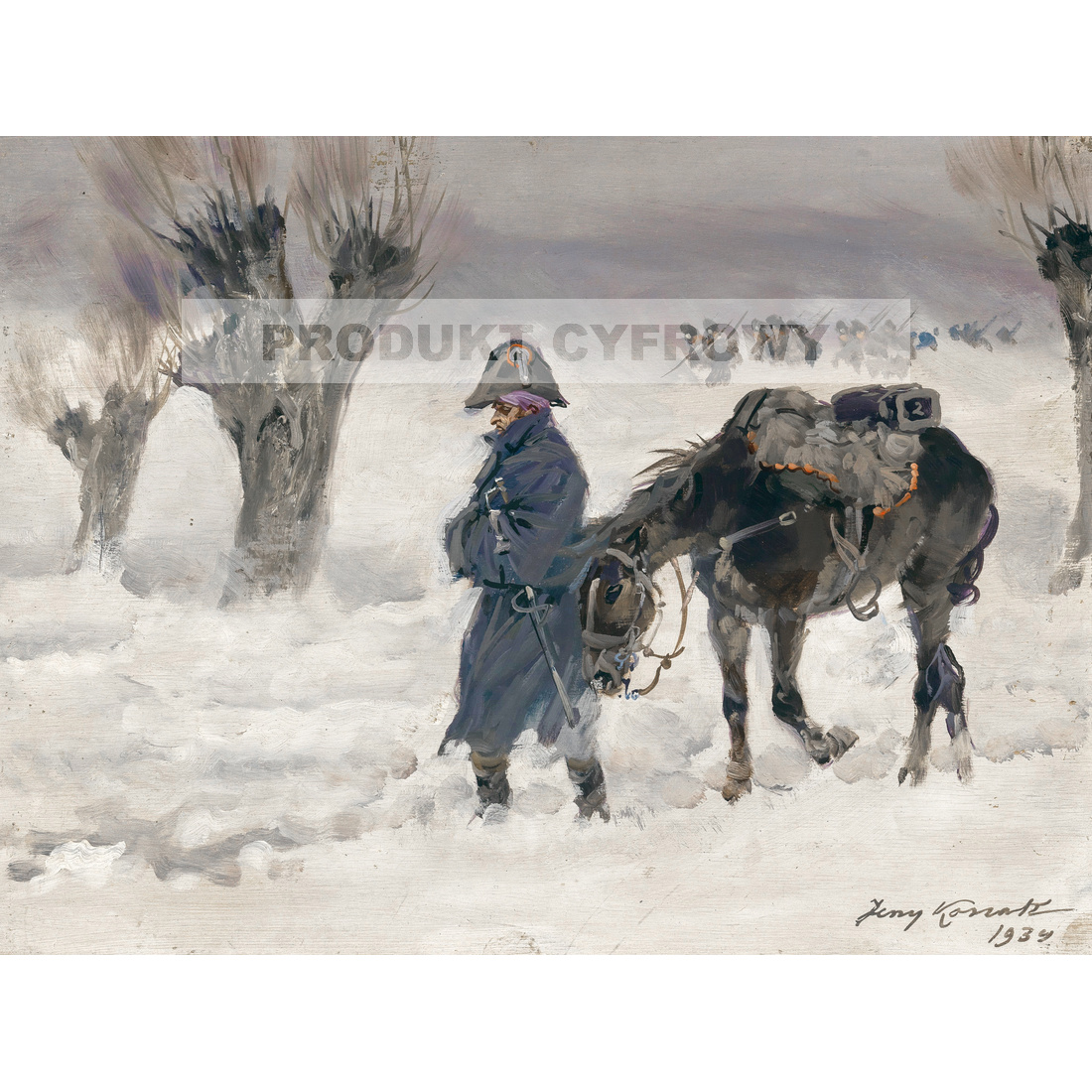 - Jerzy Kossak Odwrot podczas kampanii napoleonskiej 30×40 cm — JPG, 300 DPI