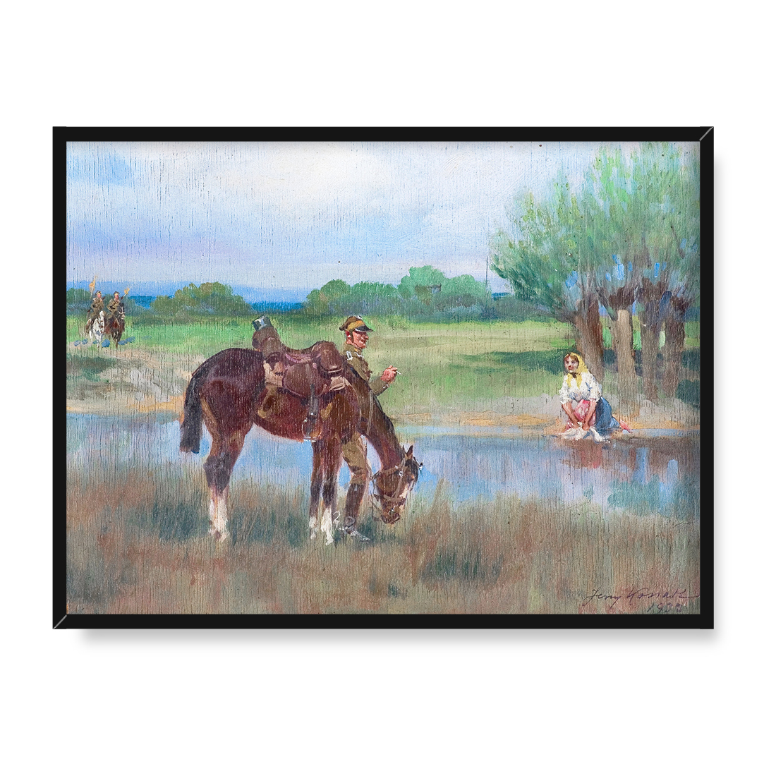 Jerzy Kossak Spotkanie nad rzeką 2 30×40 w RAMIE