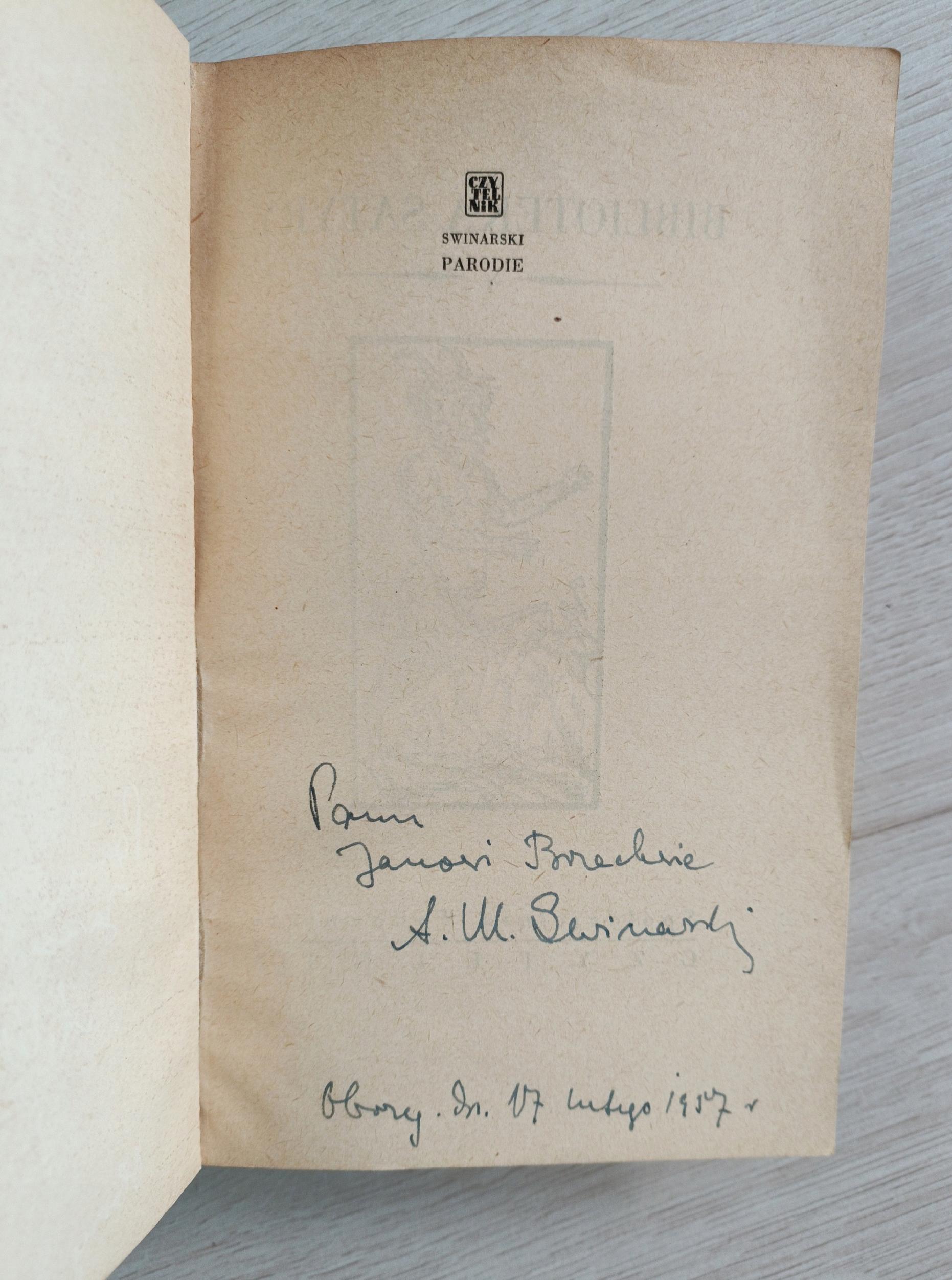 Swinarski Parodie dedykacja autora dla Jana Brzechwy